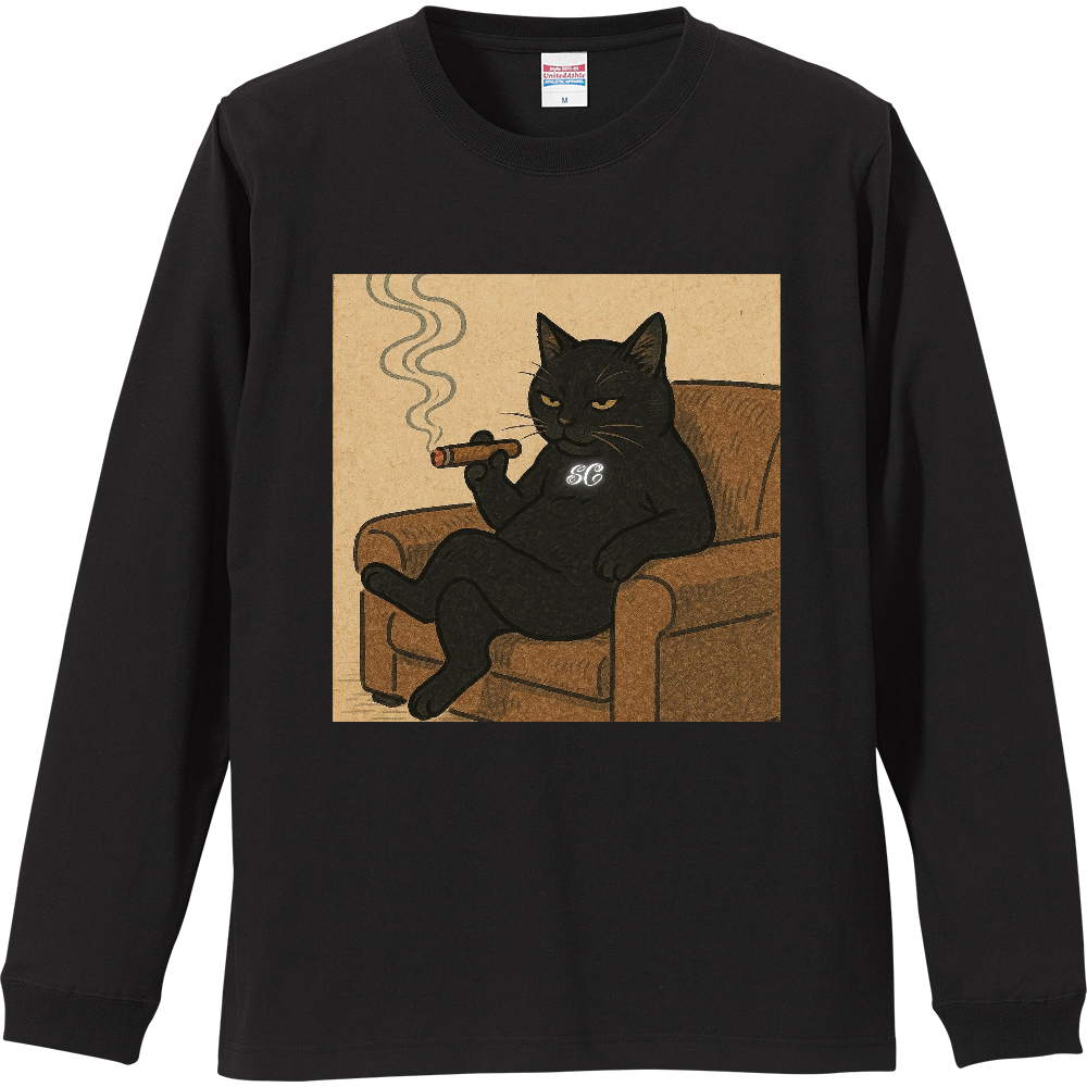 黒猫ストーニャー 家紋ロゴ ロンT ブラック