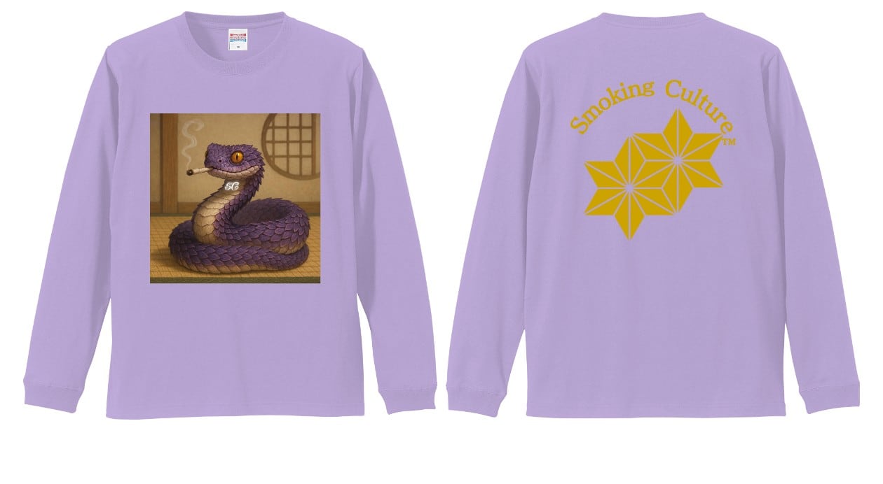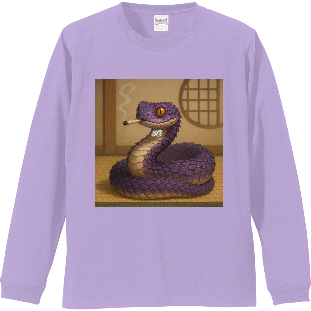 "ヘビ"ースモーカー 家紋ロゴ ロンT ライトパープル