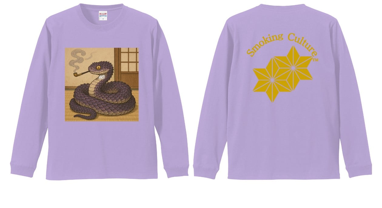 "ヘビ"ースモーカー 家紋ロゴ ロンT ライトパープル