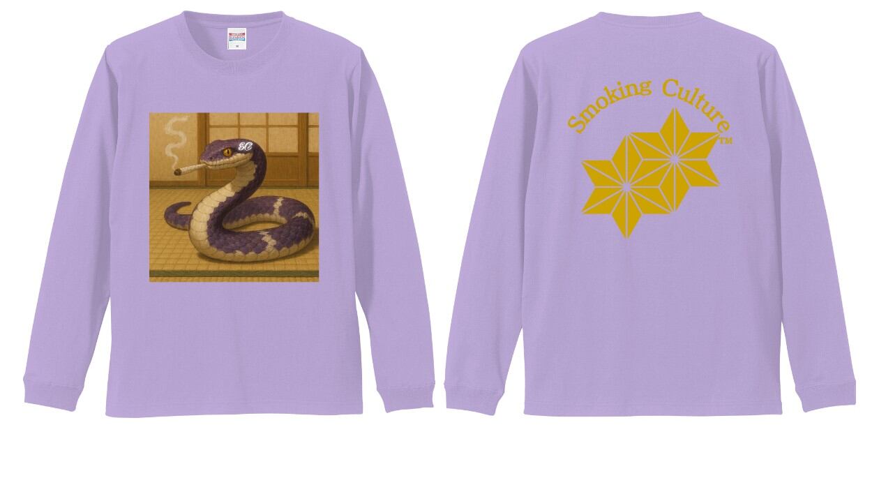 "ヘビ"ースモーカー 家紋ロゴ ロンT ライトパープル