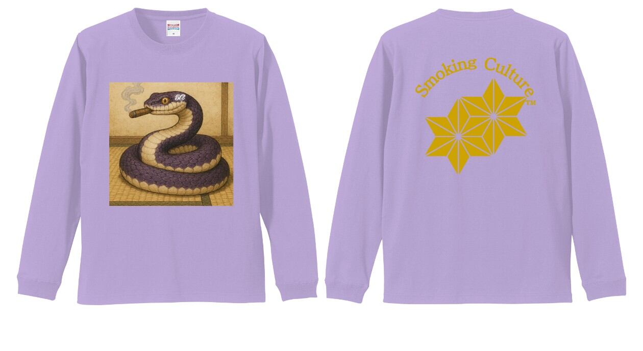 "ヘビ"ースモーカー 家紋ロゴ ロンT ライトパープル