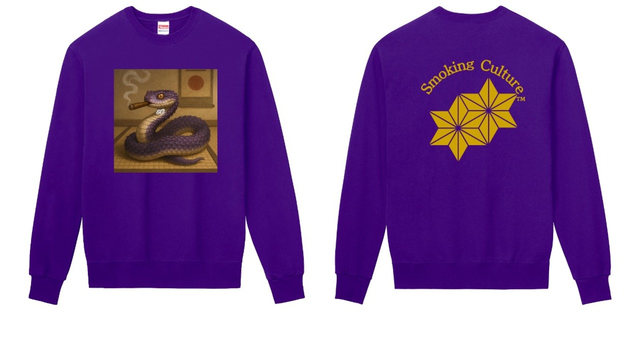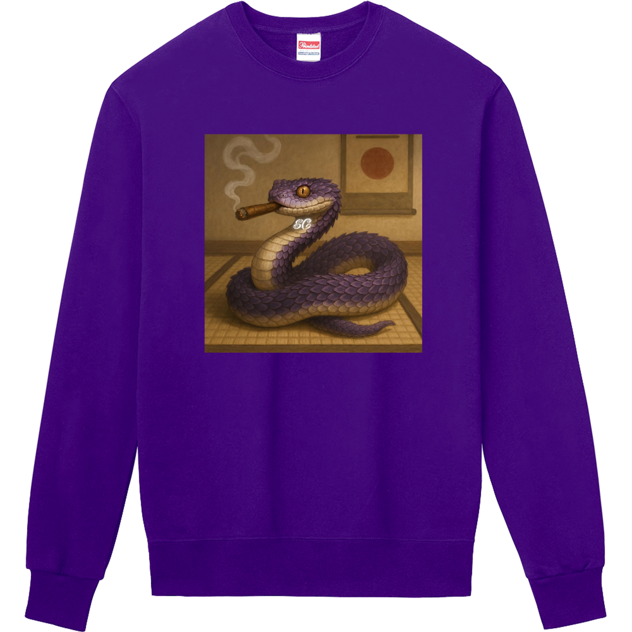 "ヘビ"ースモーカー 家紋ロゴ トレーナー バイオレット