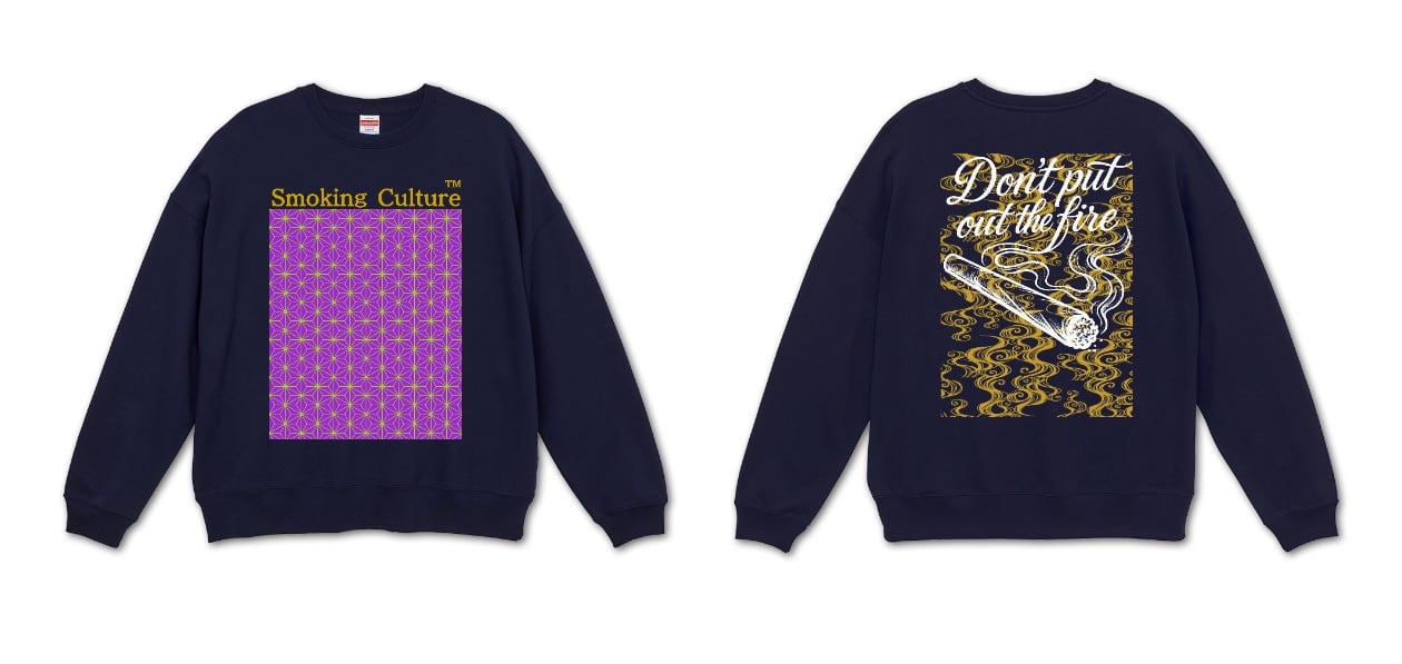 ジョイント ロゴ 麻柄 波柄 ビッグシルエットトレーナー ネイビー