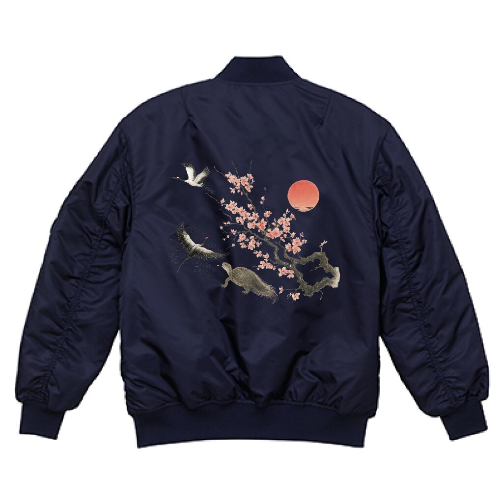 クラシックロゴ 鶴 亀 桜 MA-1ブルゾン ネイビー