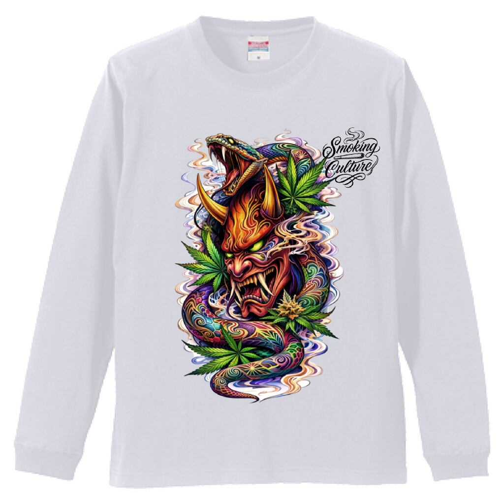 般若と蛇とWEEDの刺青テイストのデザインです。カラフルでインパクト抜群。